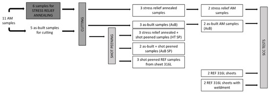 In the present study, basic sheet AM 316L components were characterized by the presence of residual stress, distinct microstructural features, etc., which could be detrimental in an actual working environment. In order to change the traditional manufacturing method of certain 316L components to AM, thorough characterization is needed to verify the suitability of AM components. Therefore, it is important to study these components and the post-processing methods and investigate their effect on the microstructure, residual stress formation and corrosion behavior. On very demanding corrosion atmospheres, the question is does AM lower or eliminate the risk of SCC compared to the welded 316L component? Here, the AM 316L samples were tested in different conditions: as-built, stress relief annealed and shot peened. A systematic investigation of surface and subsurface residual stresses as well as microstructure was also done in as-built and post-treated conditions. The SCC behavior of the selected samples was also investigated. In our future work, we will study more complex AM 316L shapes after different shot peening post-processing variations to consider the effects of the shape. The complex shapes might need more adjustment of the correct post-processing and may influence the functionality of the component in demanding conditions.
