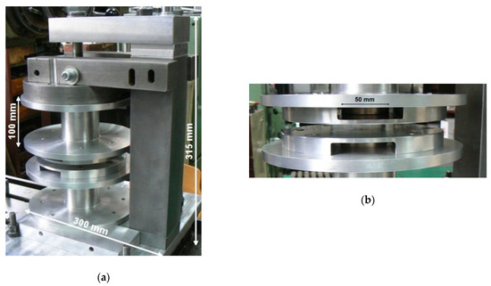 The magnetic field distribution in the machining gap largely depends on the magnetic properties of the workpiece. In the process of modeling the magnetic flux density, the influence of the magnetic properties of the workpiece was not taken into account because the proposed construction of the magnetic circuit was dedicated to the finishing of nonferromagnetic objects. In the proposed model, due to the constructional features of the experimental station, the adopted air gap adjustment range was from 10 to 30 mm. After taking into account the thickness of the separators (4 mm each), the actual machining gap size (distance between the upper and lower magnet stacks) was in the range from 18 to 38 mm.