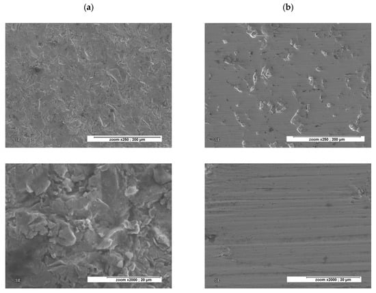 The relative change of roughness parameters (Figure 25, Figure 26, Figure 27 and Figure 28) for the smallest concentration of abrasive grains (K = 16%) is negligible. The number of abrasive grains is not sufficient for an efficient machining process. The reason for this is the accumulation of a significant amount of abrasive grains at the top head. These grains do not take part in the machining process (Figure 30).