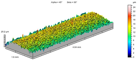 Figure 25, Figure 26 and Figure 27 show a change in roughness in the range from 2 to 5.6%, while Figure 28 shows a change in the Rt roughness height by 18.2%. This parameter is the most sensitive indicator of high peaks and deep scratches. It is highly probable that the machining removed most strongly the peaks of the roughness profile.