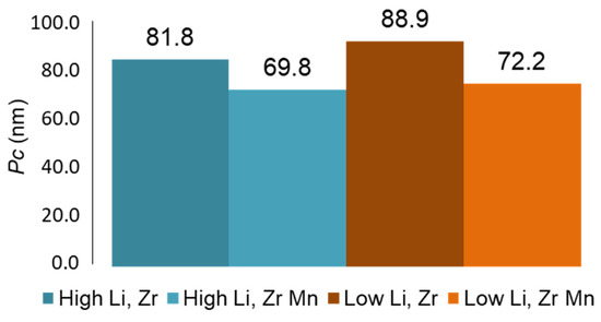 Results are pictured in Figure 5. For both alloys, samples containing both Zr and Mn dispersoids have lower Pc values, showing that the simultaneous presence of both dispersoids tends to homogenize the plastic strain. With the addition of Mn dispersoids, the extrusion height is reduced by 14.7% for Li-Zr alloys and 18.8% for Li-Zr alloys showing that Mn is beneficial to reduce slip activity in slip bands.