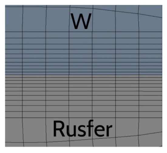 The mesh near the contact region for FEM calculations is shown in Figure 2. There are 10 inflation layers on each side; the smallest elements are 0.02 mm by 0.2 mm, and the growth rate in the vertical direction is 1.1.