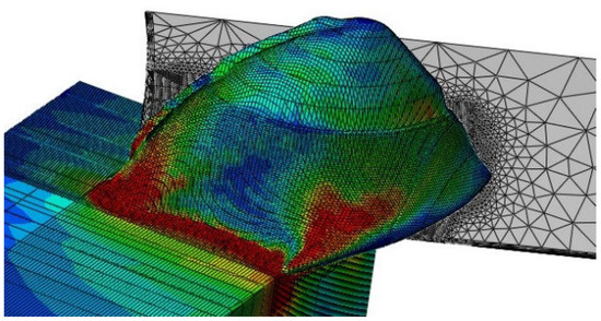 Cutting process simulated by the 3D coupled Eulerian-Lagrangian (CEL) finite element method (FEM) model.