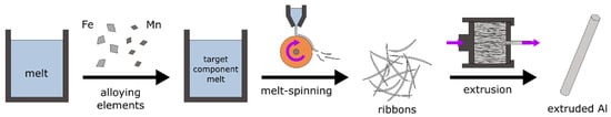 - Cavojsky, M.; Svec, P., Sr.; Janickovic, D.; Orovcik, L.; Simancik, F. Rapidly solidified Al-Mo and Al-Mn ribbons: Microstructure and mechanical properties of extruded profiles. Kov. Mater 2014, 52, 371–376. [Google Scholar] [CrossRef][Green Version]
