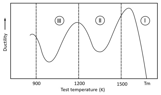 - Suzuki, H.G.; Elyon, D. Hot ductility of titanium alloy: A challenge for continuous casting process. Mater. Sci. Eng. A 1998, 243, 126–133. [Google Scholar] [CrossRef]