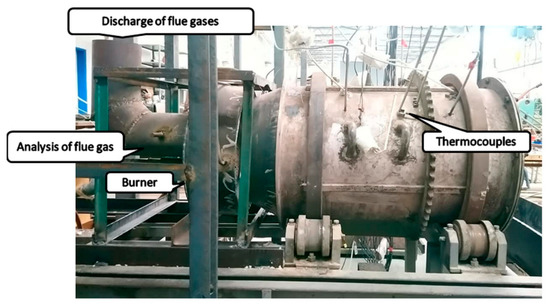 The experimental model did not rotate during the experiments. It was set up statically due to the placement of thermocouples around the circumference of the casing and their fixed connection to the measuring panel. Flue-gas analysis was performed using a Testo-350XL flue-gas analyzer (K-Test, s.r.o., Košice, Slovakia). Flow rates of all gaseous media were measured using Bronkhorst-designed MASS-VIEW (AREKO s.r.o., Bratislava, Slovakia) series thermal mass flow meters/regulators. These devices operate on the principle of direct thermal mass flow measurement [22]. The specific models used during these experiments were MV-308, MV-106 and MV-306 (AREKO s.r.o., Bratislava, Slovakia).