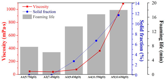 Influence of MgO content on the viscosity, foaming life, and solid fraction.
