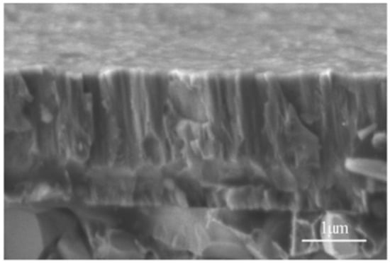 SEM cross-section of the TiAlMoN films with differing Mo contents: 12.1 at. %, presented by Yang et al. [59].