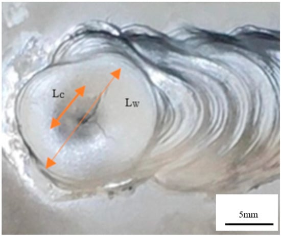 The characterization of the susceptibility to solidification cracks was carried out by measuring the length of the central crack in the weld with an optical microscope (Figure 2). The researchers estimated the solidification crack rate under different parameter combinations through the relationship given by Equation (1), where Lc is the length of the central crack, Lw is the total length of the weld, and Hc is the crack rate of the central solidified crack. The larger the value of crack rate, the higher the sensitivity of solidification cracks, and the greater the possibility of solidification cracks initiation and propagation [26]. This is Example 1 of Equation (1):