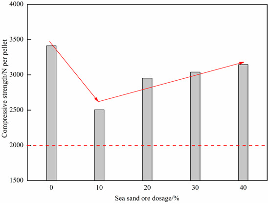 Compressive strength of oxidized pellets with different dosages of sea sand ore.