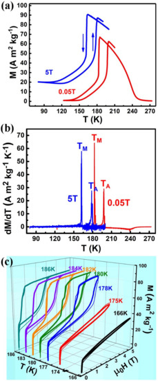 The change in transformation temperature (ΔTA) induced by the change in magnetic field (μ0ΔH) usually follows the Clausius–Clapeyron relation [12,30,31]: