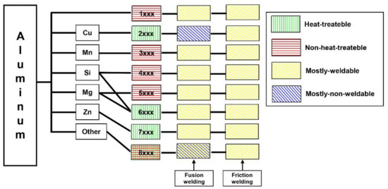 - Mathers, G. The Welding of Aluminium and Its Alloys; Woodhead Publishing: Cambridge, UK, 2002. [Google Scholar]