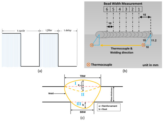 - Baskoro, A.S.; Amat, M.A.; Pratama, A.I.; Kiswanto, G.; Winarto, W. Effects of tungsten inert gas (TIG) welding parameters on macrostructure, microstructure, and mechanical properties of AA6063-T5 using the controlled intermittent wire feeding method. Int. J. Adv. Manuf. Technol. 2019, 105, 2237–2251. [Google Scholar] [CrossRef]