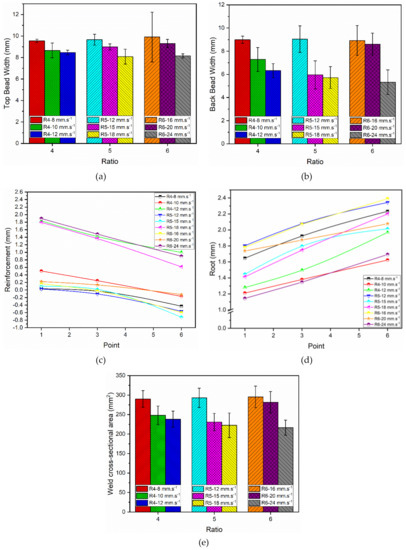 - Geng, H.; Li, J.; Xiong, J.; Lin, X.; Huang, D.; Zhang, F. Formation and improvement of surface waviness for additive manufacturing 5A06 aluminium alloy component with GTAW system. Rapid Prototyp. J. 2018, 24, 342–350. [Google Scholar] [CrossRef]