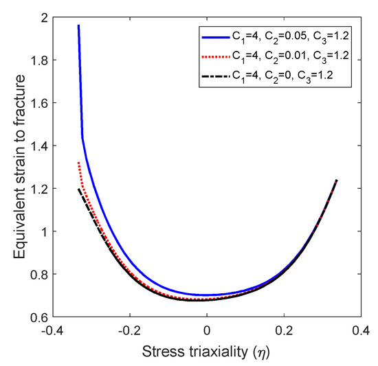 This new special approach is employed in this study, and the fracture locus constructed using this calibration approach with the material constants is further used in the FE simulation, as shown in Figure 2. Moreover, a sensitivity analysis is carried out on the effect of as the most influential parameter with respect to micro-crack formation and crack length under compressive overload conditions using different fracture locus.
