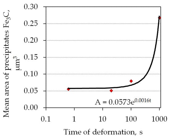 Mean surface area of Fe3C precipitates as a function of time of deformation.