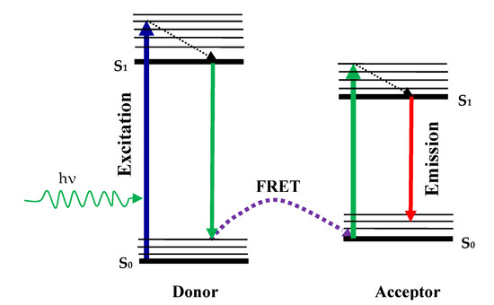 - Shi, J.; Tian, F.; Lyu, J.; Yang, M. Nanoparticle Based Fluorescence Resonance Energy Transfer (FRET) for Biosensing Applications. J. Mater. Chem. B 2015, 3, 6989–7005. [Google Scholar] [CrossRef] [PubMed]
