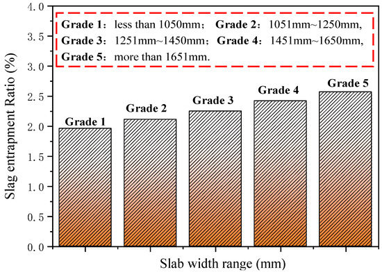 Large Eddy Simulation of Multi-Phase Flow and Slag Entrapment in Molds with Different Widths
