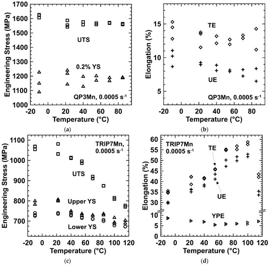 Poling, W.A.; De Moor, E.; Speer, J.G.; Findley, K.O. Temperature Effects on Tensile Deformation Behavior of a Medium Manganese TRIP Steel and a Quenched and Partitioned Steel. Metals 2021, 11, 375. https://doi.org/10.3390/met11020375