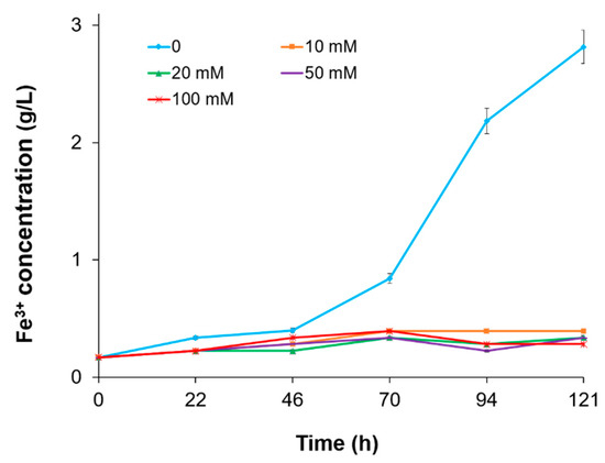Growth of L. ferriphilum CC on 100 mM Fe2+ with different initial concentrations of Fe3+.