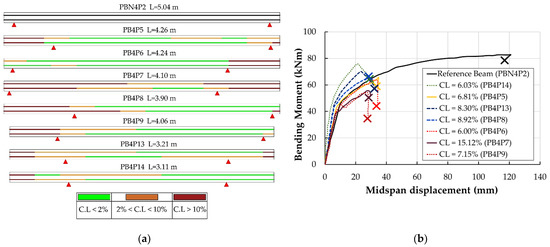| Pape and Melchers, 2010 [29,30] | DB_N 3 | 60(22.5) × 67.5 × 1300 T-shaped beam | Natural corrosion (45 years) | Max 75% cross-section loss of wires strand |