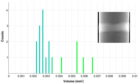 Figure 1 shows the defect size distribution for a C-1 joint specimen which was considered as being without defects. Indeed, the cumulative defects volume was very low (0.06 mm3).