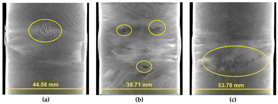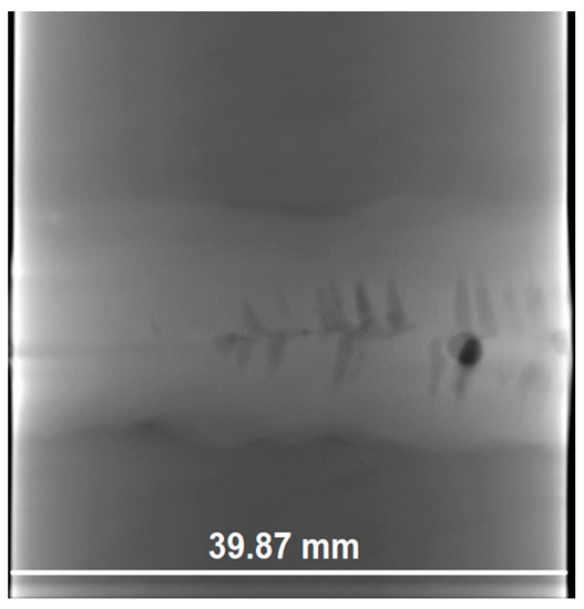 The defectiveness of the investigated welded joints was analyzed using 3D CT. The CT technique has already been applied by the authors for analyzing the quality control of specimens, made of Iroko wood [28] and Iroko wood laminates [29] used for boat structures, as well as for non-destructive quality evaluation of specimens produced by wire arc additive manufacturing (WAAM) [30] and electron beam melting (EBM) [31] technologies. Nondestructive techniques have already been applied to find a correlation between mechanical strength of welded joints, in terms of defects distribution [32,33] and geometry [34,35].