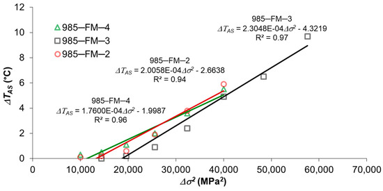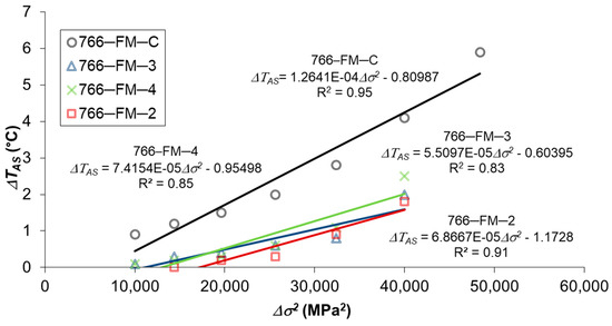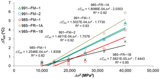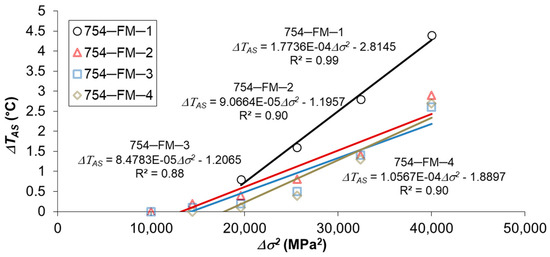 - asymptotic temperature values (ΔTAS) relative to the corresponding applied stress range (Δσ);