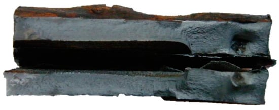 The low value of fatigue strength predicted by the rapid thermographic method for the 766-FM-C specimen (80 MPa) is confirmed by the presence of a significant defect in the weld zone clearly discernible in the fracture zone of the specimen as can be seen from the photos of Figure 11 and Figure 12.