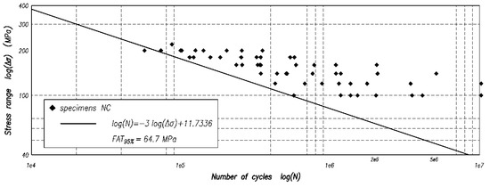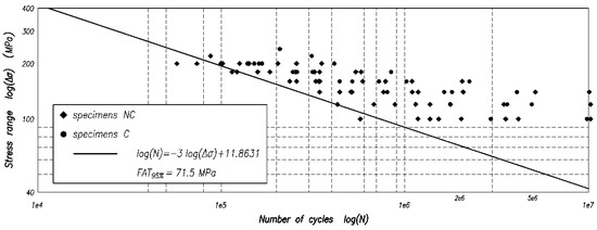 - considering the data for both the type-NC and -C joints, the following values are obtained, FAT = 71.5 MPa and standard deviation = 0.2950 MPa.