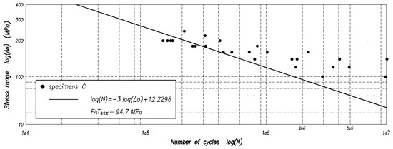 The analysis of the results, reported in Table 5, shows that the type-C-1 and -C-3 joints have similar fatigue strength values, so the thickness variation from 5.5 to 6.5 mm does not produce a significant variation of the fatigue strength.