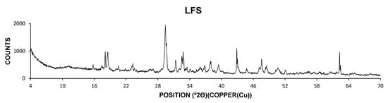To determine the elemental composition of the ladle furnace slag, the X-ray fluorescence (XRF) test was performed. This test determines the chemical elements with the highest atomic weight present in the sample as well as the proportion in which they are present. Therefore, it is useful to identify which elements can be harmful to the final product or pollutants if they are not properly treated. The X-ray fluorescence test was performed with the commercial equipment ADVANT’XP+ (ADVANT’XP+, Thermo Fisher, Waltham, MA, USA).