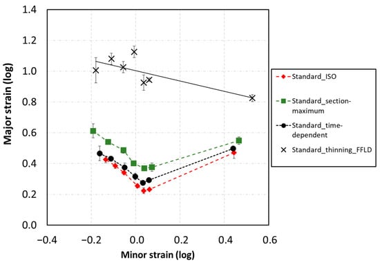 - DIN ISO 12004-2:2008. Metallic Materials—Sheet and Strip—Determination of Forming Limit Curves—Part 2: Determination of Forming Limit Curve in the Laboratory; ISO: Geneva, Switzerland, 2008. [Google Scholar]