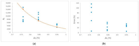 | No. | Strain Range/% | Experimental Life | Source Morphology | 2 a/μm | 2 c/μm | Predicted Life | Error/% |