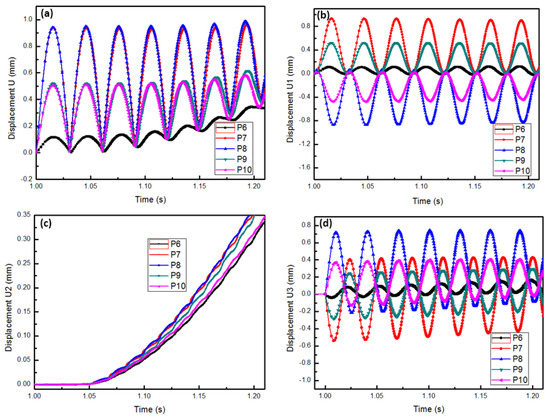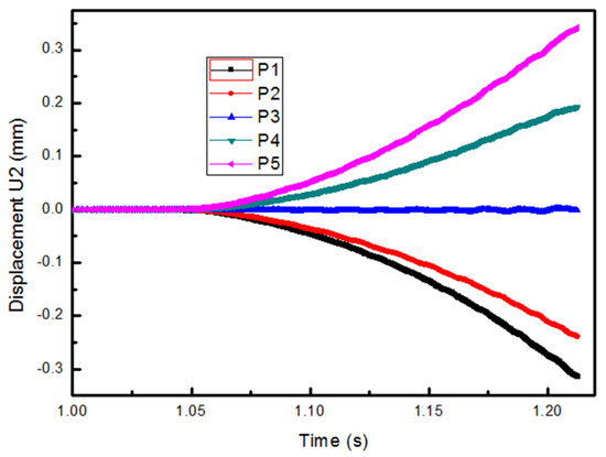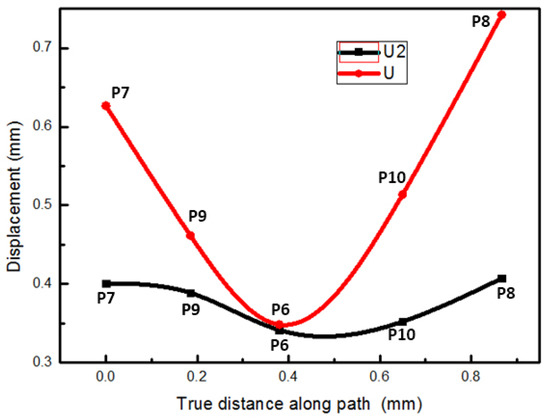 - The displacement field of the thread rolling was studied. It shows a trend of symmetrical extension on both sides during the forming process. The axial extension of the outer characteristic point is about 0.05 mm more than the axial extension at the center. This explains the reason for the concave core at the workpiece end.