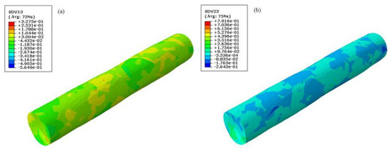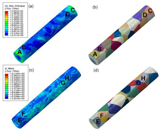 - The volume average method was used in the polycrystalline model to obtain the mechanical response of the representative element after homogenization. It can better reflect the force state of the entire material than a single grain.