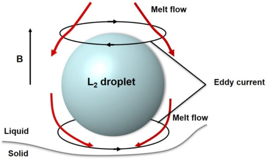 - Zhang, L.; Man, T.; Huang, M.; Gao, J.; Zuo, X.; Wang, E. Numerical Simulation of Droplets Behavior of Cu-Pb Immiscible Alloys Solidifying under Magnetic Field. Materials 2017, 10, 1005. [Google Scholar] [CrossRef]
