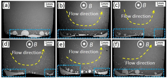 - Zheng, T.; Zhong, Y.; Lei, Z.; Ren, W.; Ren, Z.; Debray, F.; Beaugnon, E.; Fautrelle, Y. Effects of high static magnetic field on distribution of solid particles in BiZn immiscible alloys with metastable miscibility gap. J. Alloy. Compd. 2015, 623, 36–41. [Google Scholar] [CrossRef]