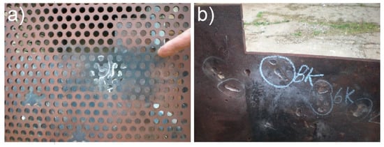 - Burian, W.; Żochowski, P.; Gmitrzuk, M.; Marcisz, J.; Starczewski, L.; Juszczyk, B.; Magier, M. Protection Effectiveness of Perforated Plates Made of High Strength Steel. Int. J. Impact Eng. 2019, 126, 27–39. [Google Scholar] [CrossRef]