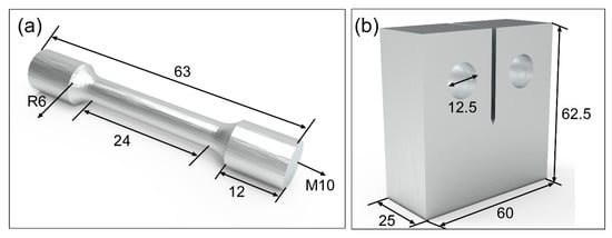 Schematic of (a) standard M10 cylindrical tension test samples and (b) dimension of compact-tension specimen.