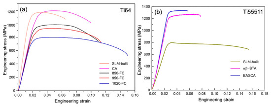 Representative engineering stress-strain curves of (a) Ti64 and (b) Ti55511.