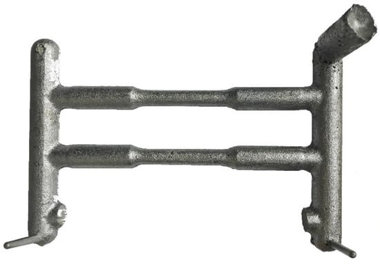 Upon completion of blowing, the melt was poured into a green sand mold. From the produced castings (Figure 3), specimens were cut for studying. Three specimens were taken from each heat.