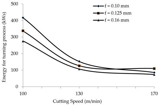 - Machining energy is inversely proportional to the cutting speed and the feed. There was also an effect of the interaction between cutting speed and feed to the machining energy.