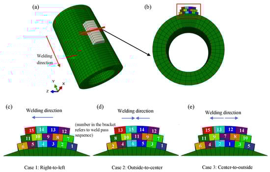 - American Society of Mechanical Engineers, P.V.; Piping Division Staff Corporate, A. Weld-Overlay Analyses-An Investigation of the Effect of Weld Sequencing. In Proceedings of the ASME Pressure Vessels and Piping Conference—2008, Chicago, IL, USA, 27–31 July 2008; pp. 565–574. [Google Scholar]