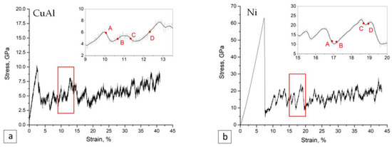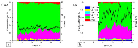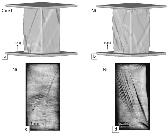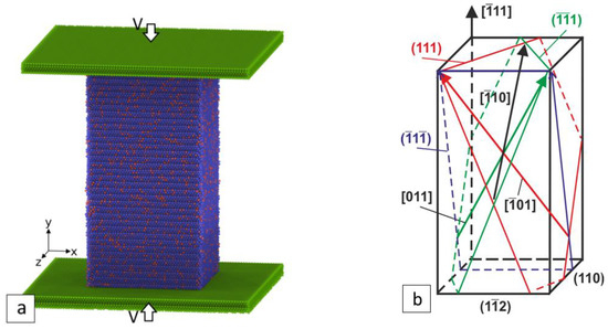 - Lychagin, D.; Dmitriev, A.; Nikonov, A.; Alfyorova, E. Crystallographic and Geometric Factors in the Shear Development in <001> FCC Single Crystals: Molecular Dynamics Simulation and Experimental Study. Crystals 2020, 10, 666. [Google Scholar] [CrossRef]