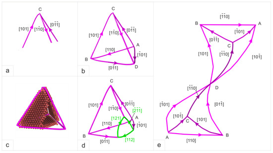 3.3.2. Stable Dislocation Configuration—Stacking Fault Tetrahedron