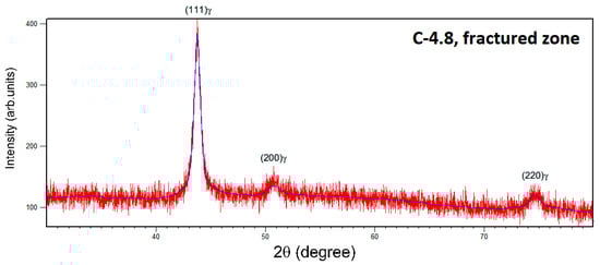 XRD analysis of C-4.8 sample from the fractured zone and revealing of austeinte peaks.