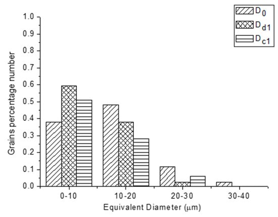 - − The defocus distance altered the melt pool size, the average grain size, and the amount of austenite content. The Dc1 specimen and the focused beam specimen (D0) exhibited a higher hardness, greater average melt pool depth and grain size, and lower austenitic content than the Dd1 specimen.