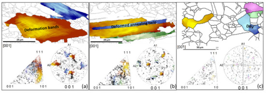 - Charpagne, M.-A.; Billot, T.; Franchet, J.-M.; Bozzolo, N. Heteroepitaxial recrystallization: A new mechanism discovered in a polycrystalline γ-γ’ nickel based superalloy. J. Alloy. Compd. 2016, 688, 685–694. [Google Scholar] [CrossRef]
