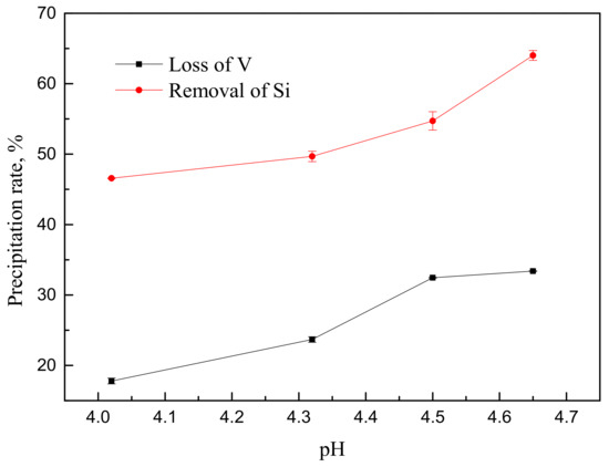 Figure 3. In order to decrease the loss of V, the dilute sulfuric acid was used to adjust the pH value constantly at 4.50 ± 0.10.